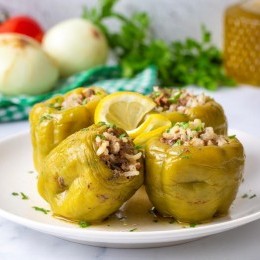 محشي الفلفل الرومي بالأرز واللحم المفروم ... يعتبر محشي الفلفل الرومي من الأطباق الشرقية الشهيرة التي تجمع بين الطعم اللذيذ والشكل الجذاب، ويعد وجبة متكاملة بحد ذاتها، يمكن تقديمها في العزائم أو كوجبة لذيذة على الغداء، جرّبيه واستمتعي بالطعم الفريد.