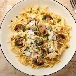 لسان عصفور بشرائح الدجاج والفطر ... طبق معكرونة لسان العصفور بالدجاج والمشروم من الأطباق الشهية والخفيفة، يجمع بين المعكرونة الصغيرة والمكونات الغنية بالنكهة. وصفة سهلة وسريعة ومناسبة لوجبة الغداء أو العشاء ويمكن تقديمها مع السلطة أو الخبز.