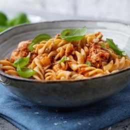 باستا الدجاج بصلصة الطماطم مع الكريمة ... تعتبر الباستا من أشهر أطباق المطبخ الإيطالي التي تتميز بطعمها اللذيذ وسهولة تحضيرها بنكهات متعددة، ومن وصفات الغداء السهلة التي يمكنك تحضيرها بمكونات اقتصادية وهي باستا الدجاج بصوص الطماطم والكريمة.
