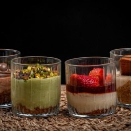 تشيز كيك الكاسات بالفيديو ... تشيز كيك الكاسات، حلى بارد شهي وسهل التحضير، يتميز بتقديمه في أكواب فردية شفافة وأنيقة، مما يجعله خياراً مثالياً للمناسبات والاستقبالات. يتكوّن الحلى عادة من ثلاث طبقات رئيسية: طبقة البسكويت المفتت بالزبدة، وطبقة كريمة الجبن، وأخيراً طبقة الفواكة أو صوص الفراولة أو الكراميل أو الشوكولاتة.