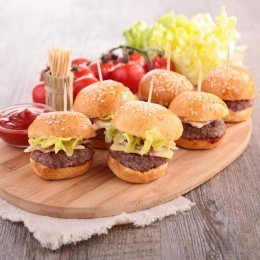 ساندوتشات الميني برجر ... الميني برجر من الأطباق الشهيرة في المطاعم العالمية، ويعود أصل البرجر إلى المطبخ الأمريكي. الميني برجر صغير الحجم ويقدّم عادة كوجبة خفيفة أو ضمن قائمة المقبلات، ويتميز بسهولة التحضير وتنوع الإضافات بحسب الرغبة.