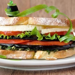 ساندويش حلوم مشوي بالباذنجان والجرجير ... يعتبر جبن الحلوم المشوي من أشهى أصناف الأجبان التي تقدم على الفطور، فهي سهلة التحضير وطيبة المذاق. جربي أسهل ساندويش بحشوة مميزة بالباذنجان والجرجير باستخدام خبز التوست.
