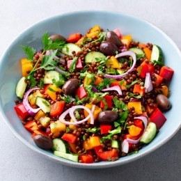 سلطة العدس الأحمر مع الطماطم والخيار للوقاية من سرطان الثدي ... تسمح لك بالاستمتاع بفوائد البقوليات دون الحاجة إلى استهلاكها ساخنة، فهي مثالية لأي وقت من السنة، اذ تجمع هذه السلطة نكهة لذيذة وخفيفة مع سهولة التحضير، ووقاية من سرطان الثدي.