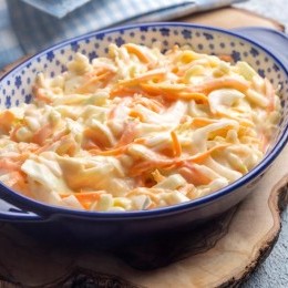 سلطة الملفوف والجزر بالمايونيز ... تقدم سلطة الملفوف كطبق جانبي، فهي تعتبر من السلطات سهلة التحضير واللذيذة الطعم، كما أنّها مغذية وتعطي إحساساً بالشبع.