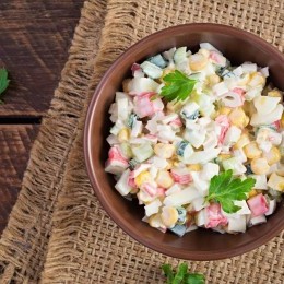 سلطة الكراب بالخضار اليابانية ... من وصفات السلطات السهلة بالمأكولات البحرية اللذيذة جداً وهي غنية بالمعادن والفيتامينات والبروتينات لأنها خليط من الخضار ولحم الكراب الجاهز، وتُحضر بخطوات سهلة وسريعة