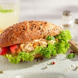 ساندويش بحشوة الدجاج بالمايونيز والخردل ... ساندويش الدجاج من ألذ الساندويشات السريعة والشهية التي انتشرت حول العالم، وأصبحت من الوجبات الخفيفة المفضلة عالمياً. يمتاز هذا الساندويش بطعمه الكريمي والمتوازن بين الدجاج الطري، المايونيز الدسم، والخردل الحار قليلاً، ويمكنك تقديمه كوجبة غداء أو عشاء سريعة.