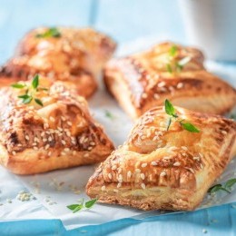 فطائر البف باستري بحشوة الدجاج السريعة ... فطائر البف باستري بحشوة الدجاج، من الوصفات السريعة والسهلة والتي تعد خياراً مناسباً للضيافة، أو وجبة خفيفة وسريعة في أي وقت خلال النهار، يمكنكِ تقديمها ساخنة بجانب السلطات أو الصوصات المفضلة لديك.