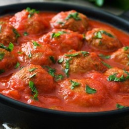 حضري طبق مميز من كرات اللحم مع الصلصة الحمراء والبطاطس، سيعجب أفراد عائلتك كما أنه ملائم للرجيم. يمكنك تقديم كرات اللحم بالصلصة الحمراء مع السباغيتي بدل من البطاطس.