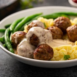 كرات اللحم السويدية ... طبق كلاسيكي غني بالكريمة والنكهات الأوروبية، يقدم غالباً مع البطاطس المهروسة أو المعكرونة. يتميز بقوامه الطري وطعمه الغني بالبهارات المعتدلة والكريمة الشهية. غني بالبروتين من اللحم، يمكن تقديمه مع الخضار أو البطاطس للحصول على وجبة متوازنة.