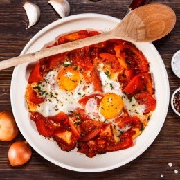 شكشوكة بالبصل والطماطم بالفرن ... وجبة فطور صباحية شهية وغنية بالبروتين والخضار، تجمع بين طعم الطماطم اللذيذ وفوائد البيض المتعددة، وهي طريقة سهلة للتحضير في الفرن مع نكهة مميزة.