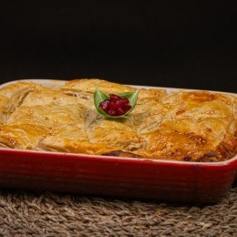 صينية الدجاج بالبف باستري بالفيديو ... قد تبدو هذه الوصفة غريبة بعض الشيء، لكنها عملية وبسيطة، وسهلة التحضير، خصوصاً إذا توفرت لديك شرائح عجينة البف باستري الجاهزة.